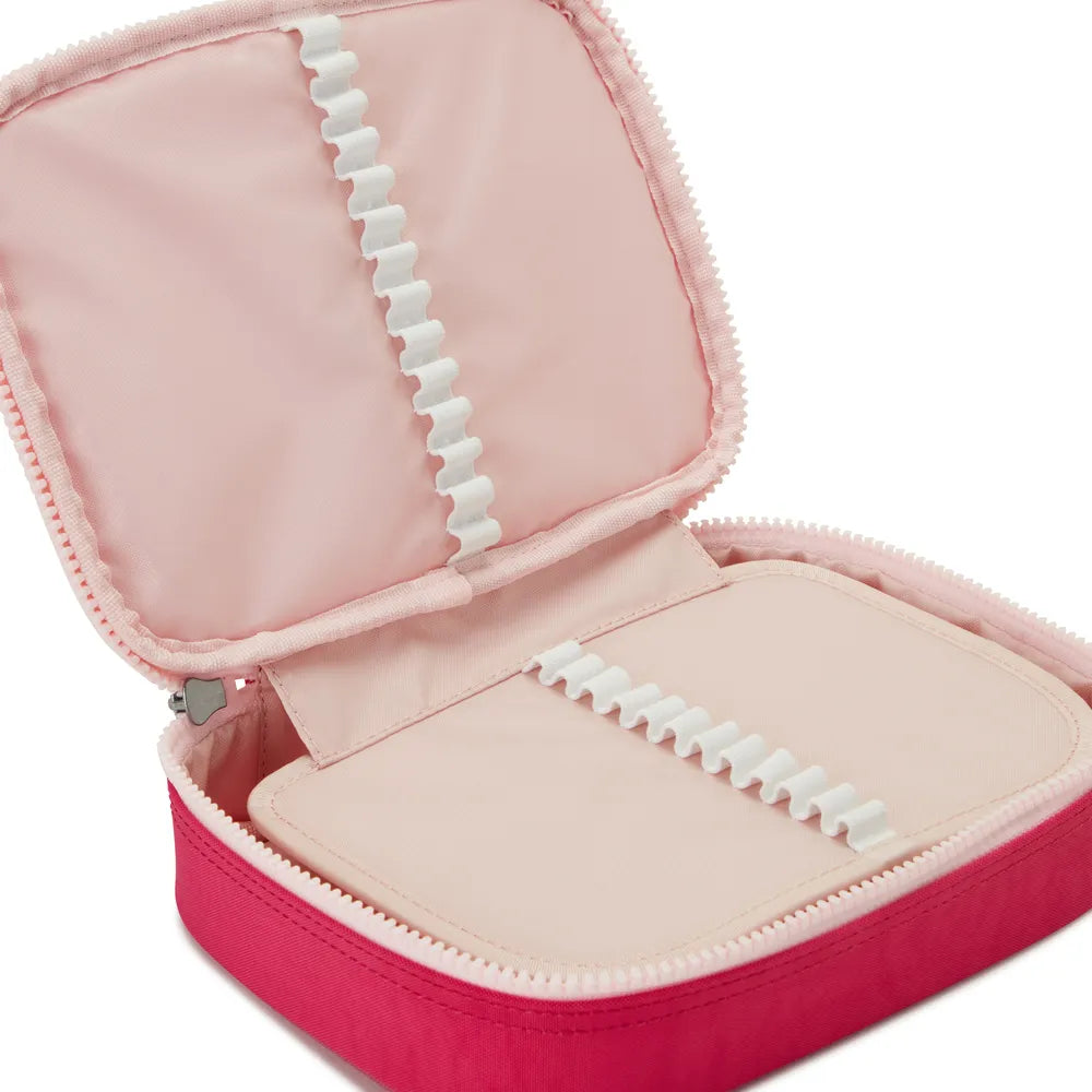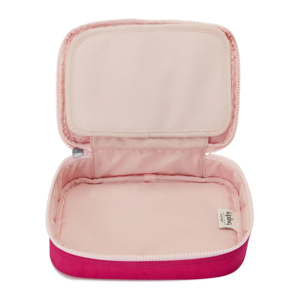 Com este estojo grande, sua mesa e sua mente ficam muito mais organizadas. Ideal para a escola ou o trabalho, ele conta com 26 elásticos internos desenvolvidos especialmente para manter canetas e lápis sempre no lugar. E tem mais: o estojo comporta até 100 canetas, sendo perfeito para quem vive procurando tudo no fundo da bolsa. Prático, espaçoso e funcional, é o aliado ideal para manter tudo organizado com estilo Kipling.
