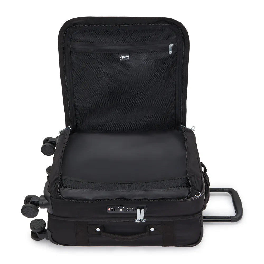 A Spontaneous S é a mala que eleva o conceito de tamanho de bordo, com um design inteligente, leve e altamente eficiente. Seu compartimento principal compacto e os bolsos internos e frontais oferecem espaço ideal para organizar toda a viagem. Para garantir ainda mais tranquilidade, conta com cadeado duplo TSA, proporcionando segurança reforçada. Acompanha ainda um charmoso macaco em silicone, que funciona como etiqueta.