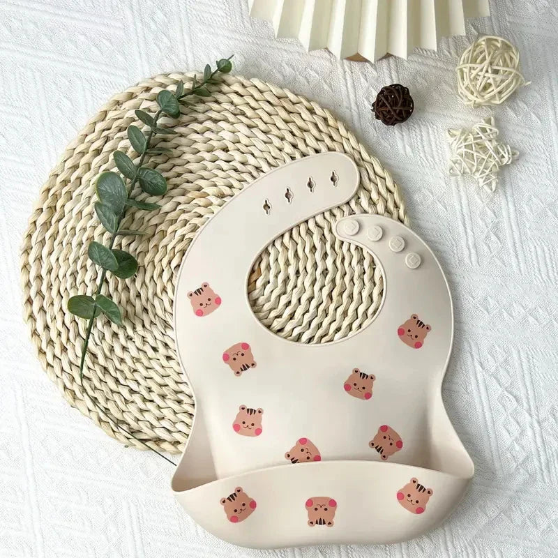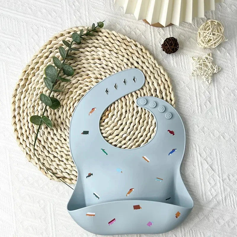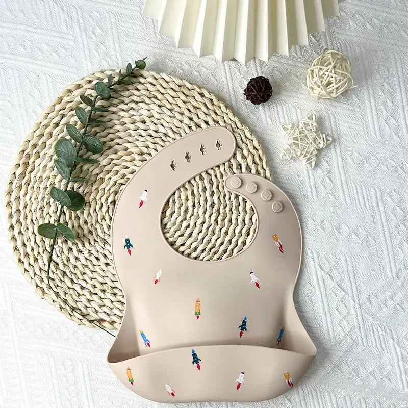 Este babador de silicone é ideal para manter seu bebê limpo e confortável durante as refeições. Feito de silicone impermeável, possui um bolso para capturar migalhas e respingos, mantendo a roupa do seu bebê limpa. É perfeito para introdução de alimentos sólidos e refeições bagunçadas.